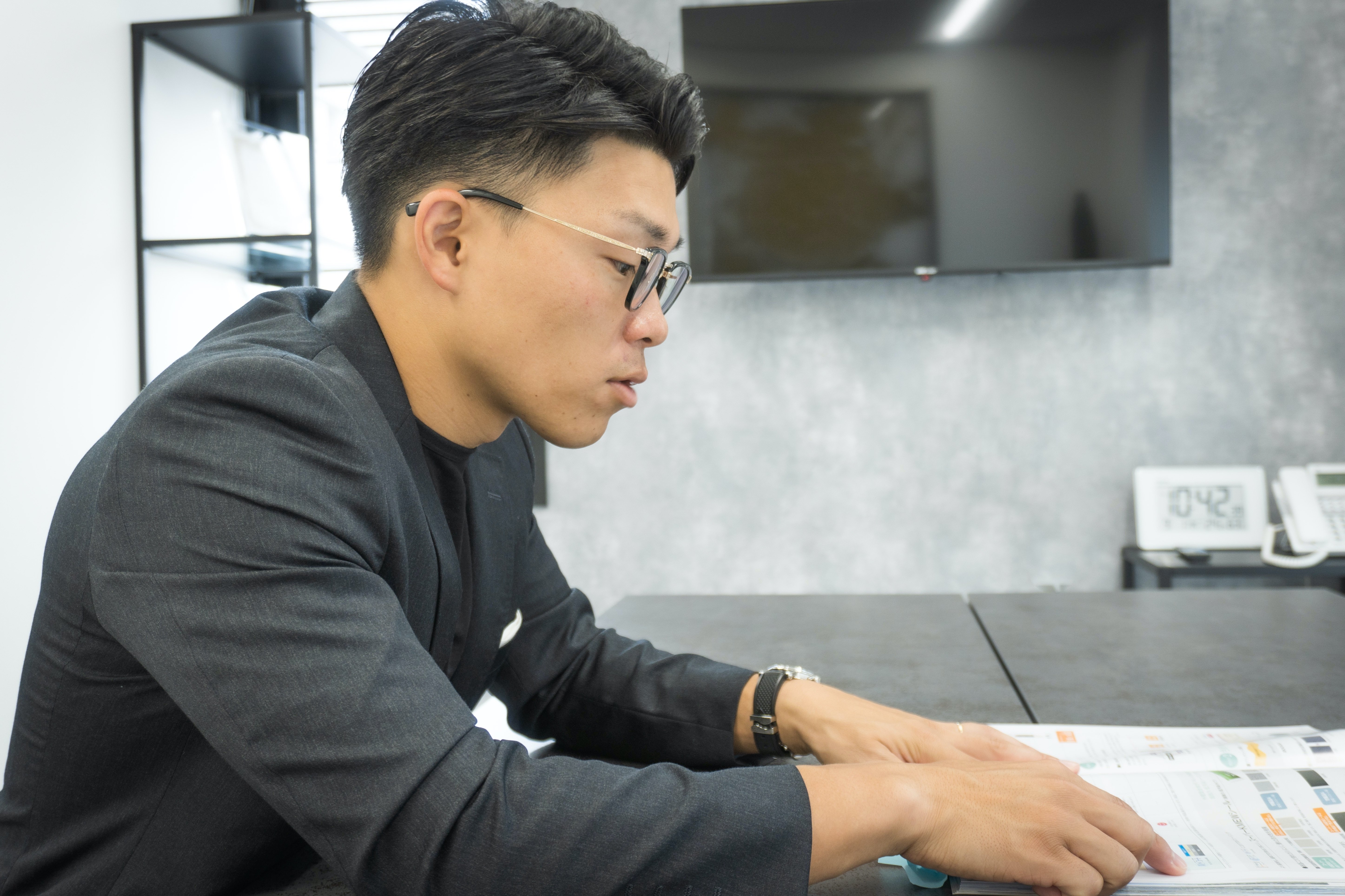 今中が新人の時からバリバリ仕事をしているのに対して、自分はそもそも仕事が無い状態。僕たちの仕事は、担当エリアが決まっているんですが、良いエリアを担当している先輩がいて、そこに入っていくことができないんです。入社して最初の2年は、先輩の契約書を作ったりチラシを撒いたりという先輩の手伝いがメインで、自分の仕事は夜になってやっとできるという感じでした。