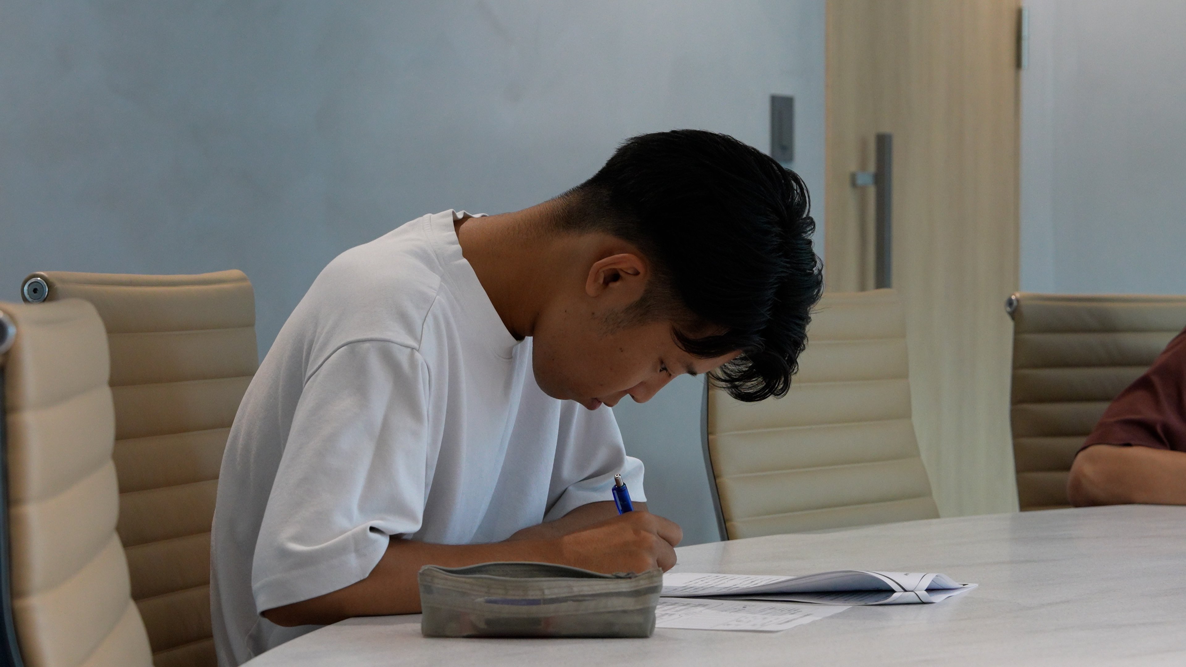 試験日が近づくにつれ、出勤前や退勤後のオフィスでは、参考書を片手に勉強へ励む姿が日常のひとコマに。時折、先輩社員が声をかけてアドバイスをしたり励ます様子も見られ、社内全体でメンバーの合格を応援しているのが伝わります。