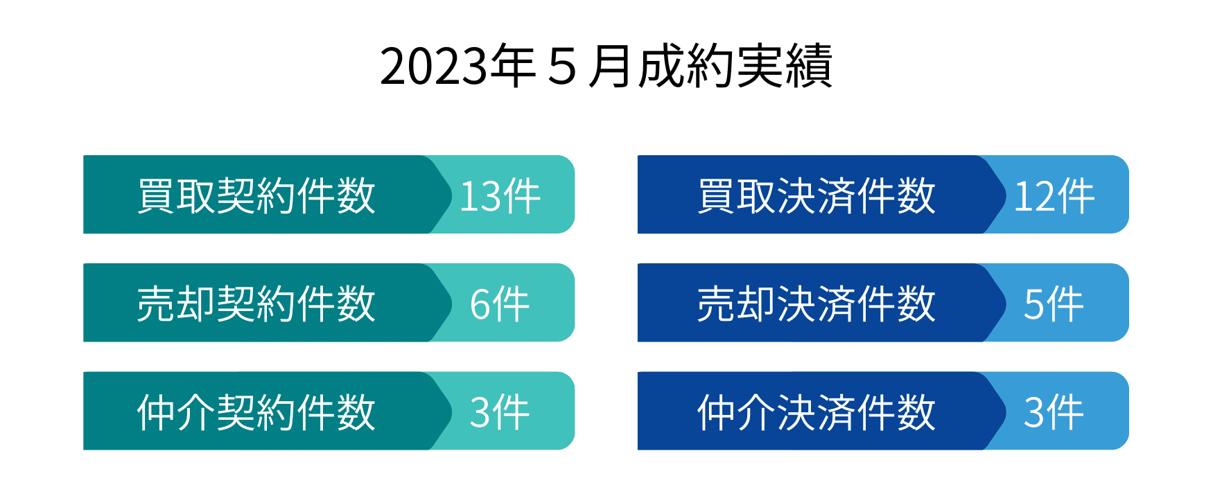 小松:5月はゴールデンウィークもあり稼働日数が少なかったものの、買取・売却・仲介共にメンバー全員よく頑張ったと思います。ただ、売却件数については理想とは遠いので、さらに意識づけをしていきたいと思っています。