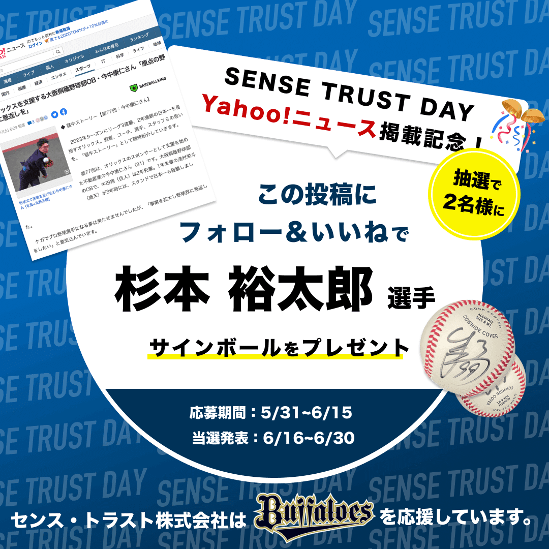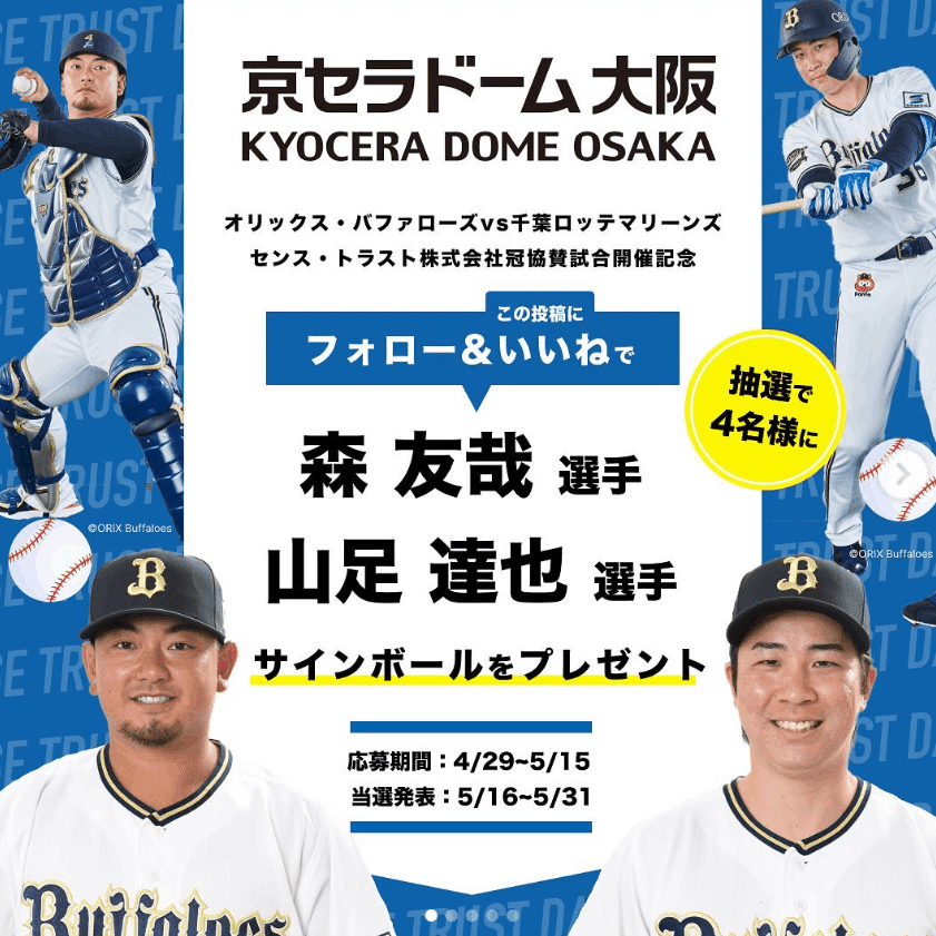 先月、京セラドーム大阪で行われた冠協賛試合「SENSE TRUST DAY」の開催を記念して、Instagramにてキャンペーンを実施しました。