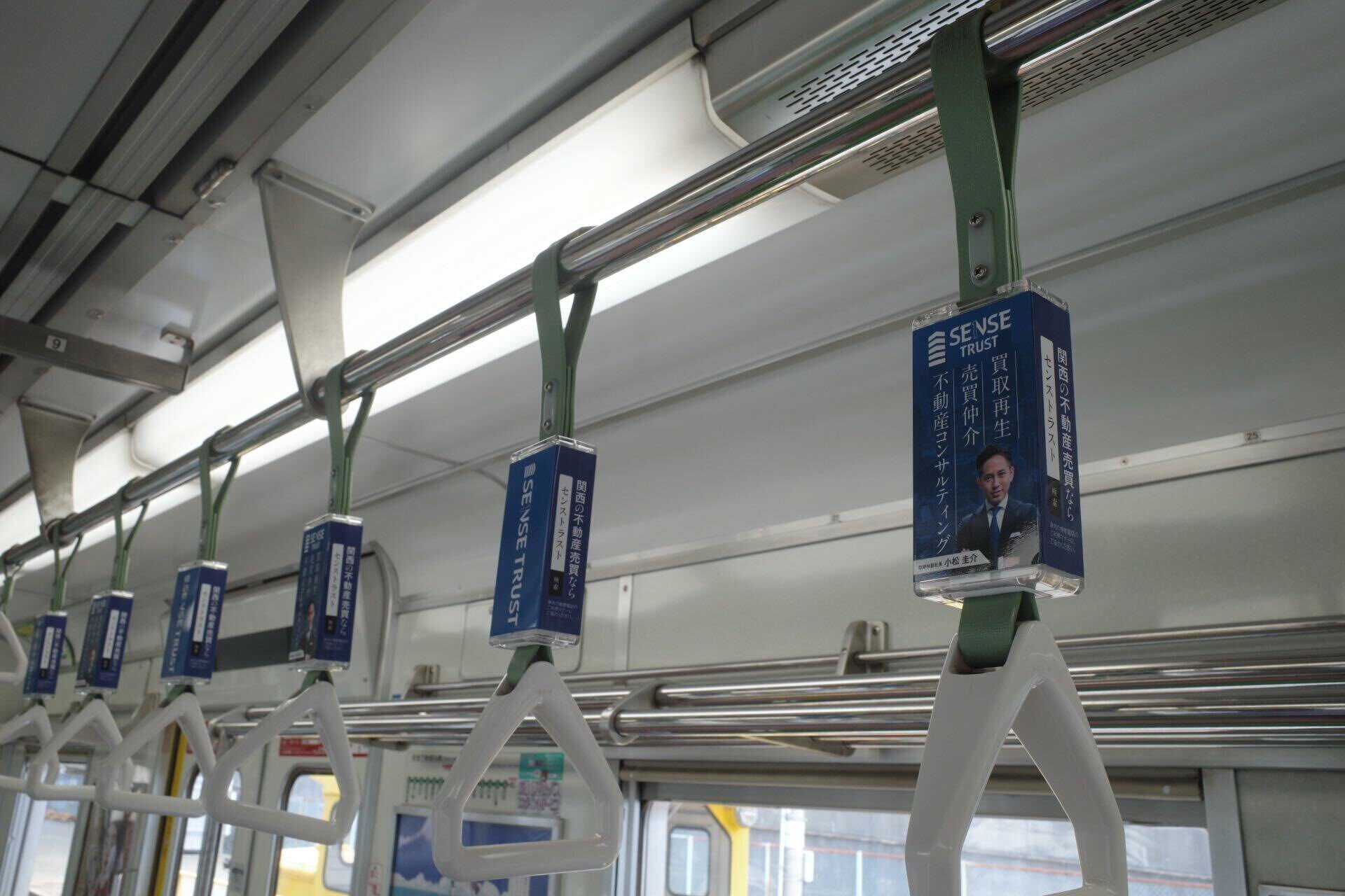 センス・トラストでは、大阪メトロ御堂筋線のつり革広告と、京都市バスのラッピング広告を展開していましたが、今回新たに京都市営地下鉄烏丸線でもつり革広告をスタートしました。