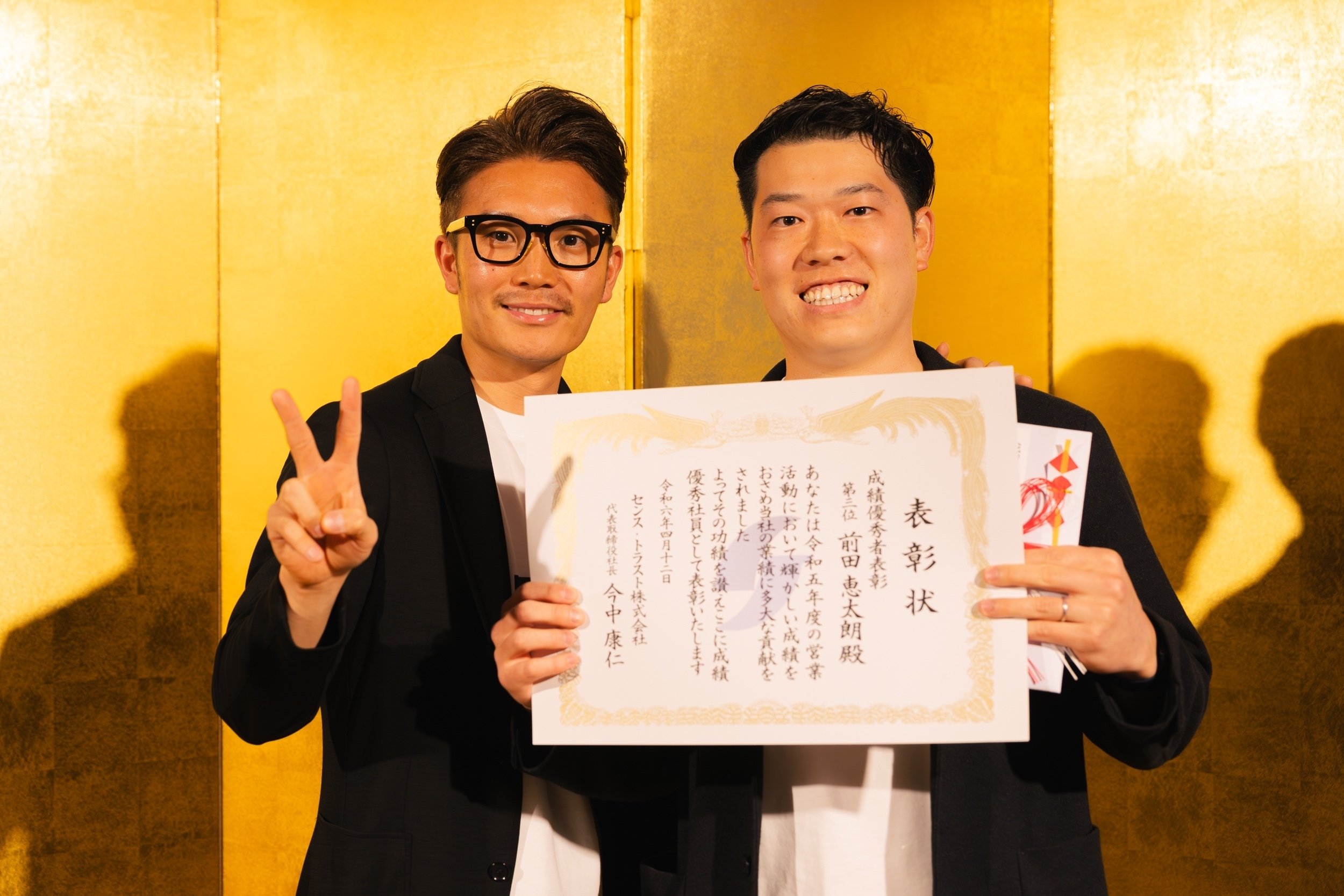 前田:一年間営業をしていて、思うようなことばかりでなく、しんどい時もありましたが他のメンバーにアドバイスなども頂き、このような賞を頂くことができ、喜びと周りのメンバーに感謝しております。今期も表彰してもらえるよう、また周りのメンバーに対して自分も役立てるよう精進していきたいと思います。