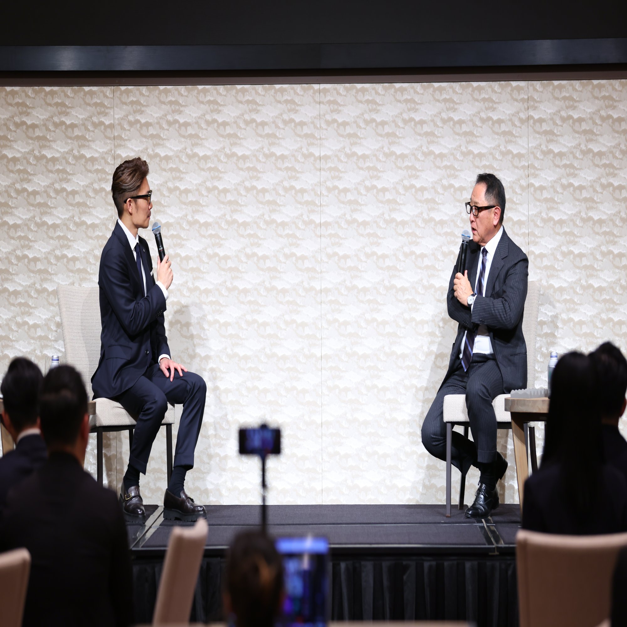 12月12日、トヨタ自動車株式会社 代表取締役会長 豊田章男会氏にお越しいただき、当社代表取締役 今中との対談が実現しました。