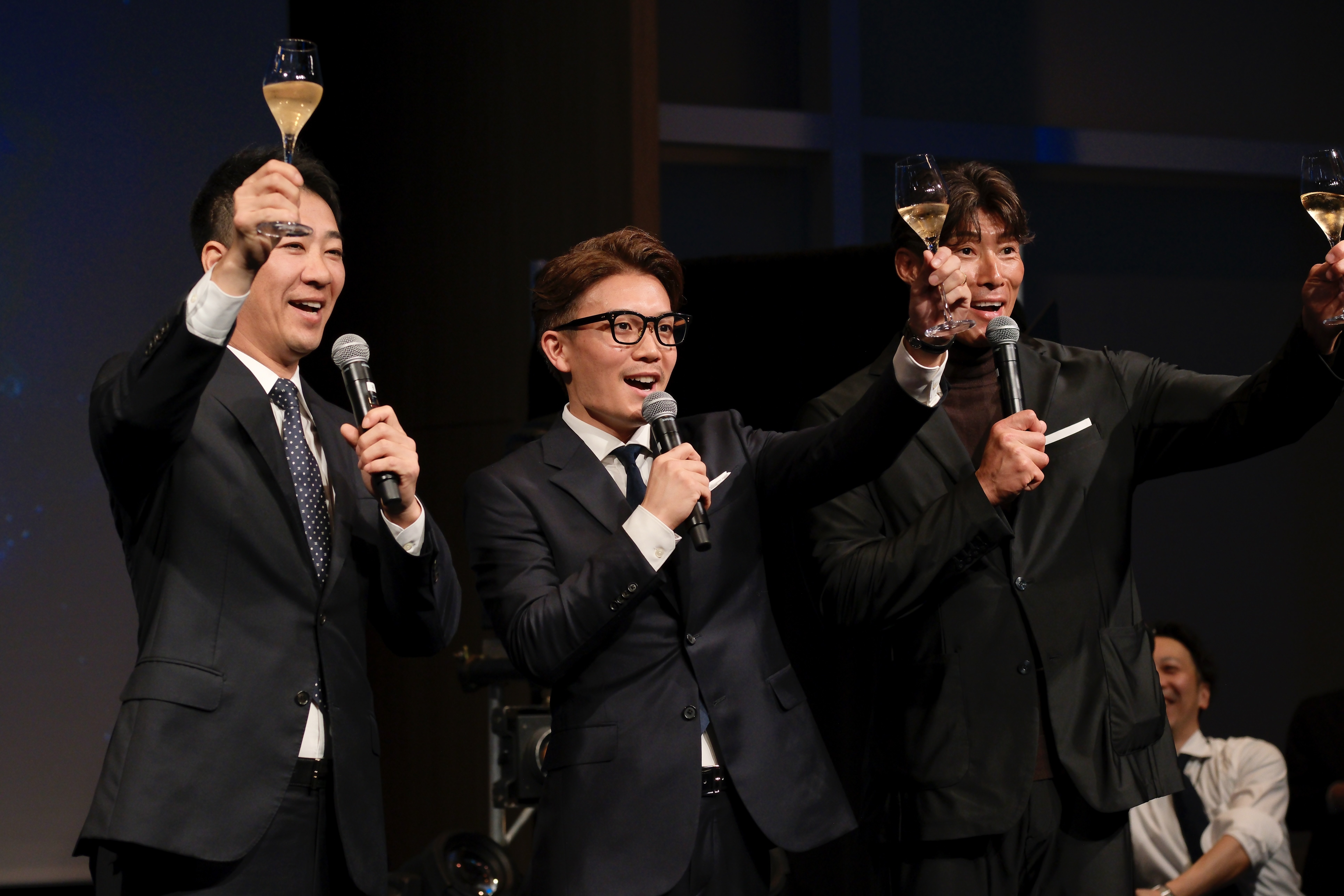 パーティーでは、田中大貴アナウンサー、宇内梨沙アナウンサーに加え、俳優・ラッパーとして活躍するSWAY氏(LDH JAPAN所属)をMCに迎え、祝宴がスタートしました。