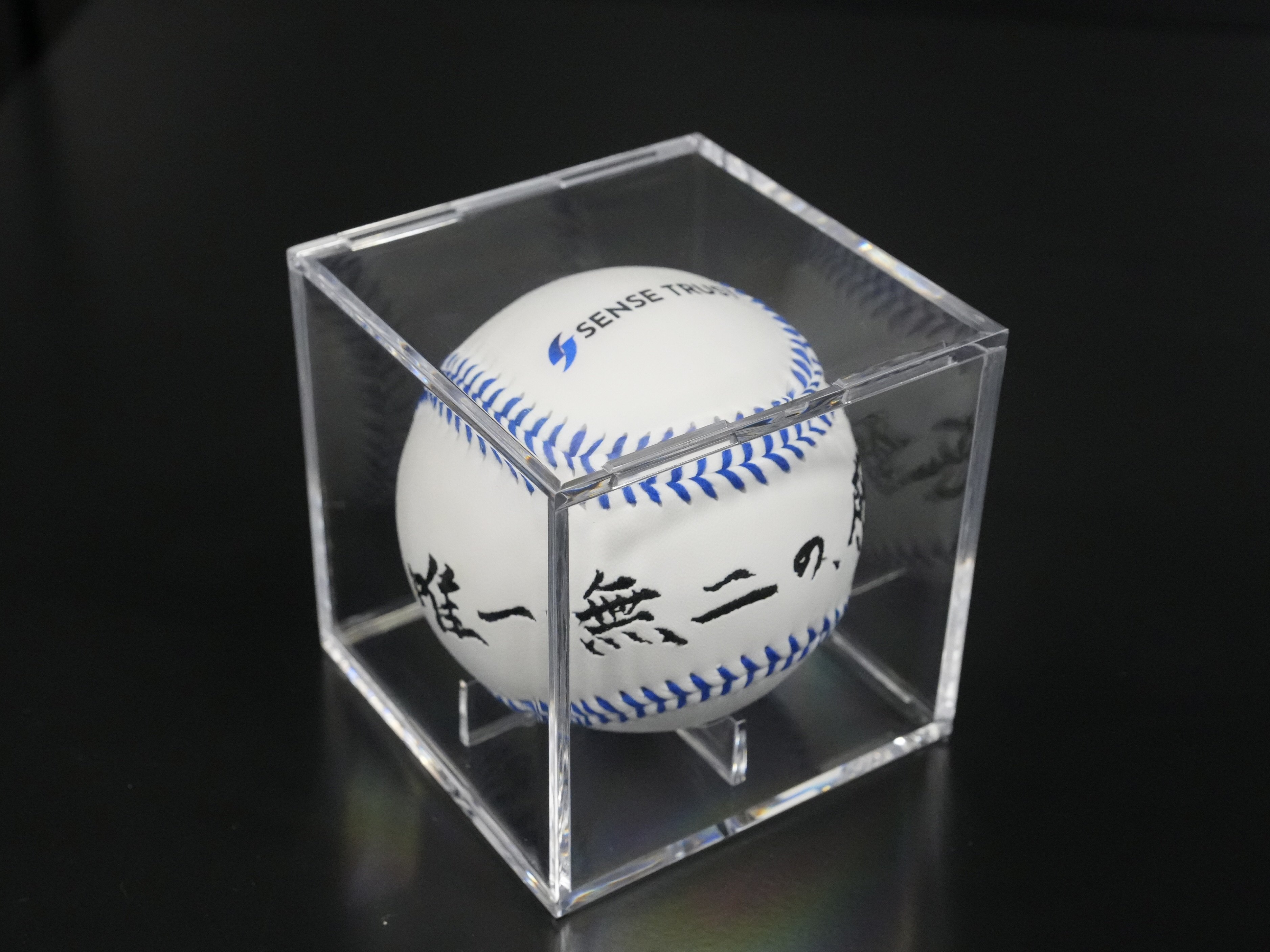 オリジナルボールには、当社のミッション「唯一無二の、感動を。」という言葉が刺繍されています。受け取る手に込められた力強さから、彼らの決意が感じられました。