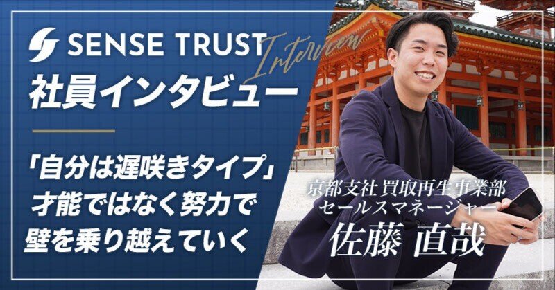 「自分は遅咲きタイプ」才能ではなく努力で壁を乗り越えていく、京都支社・佐藤直哉にインタビュー!